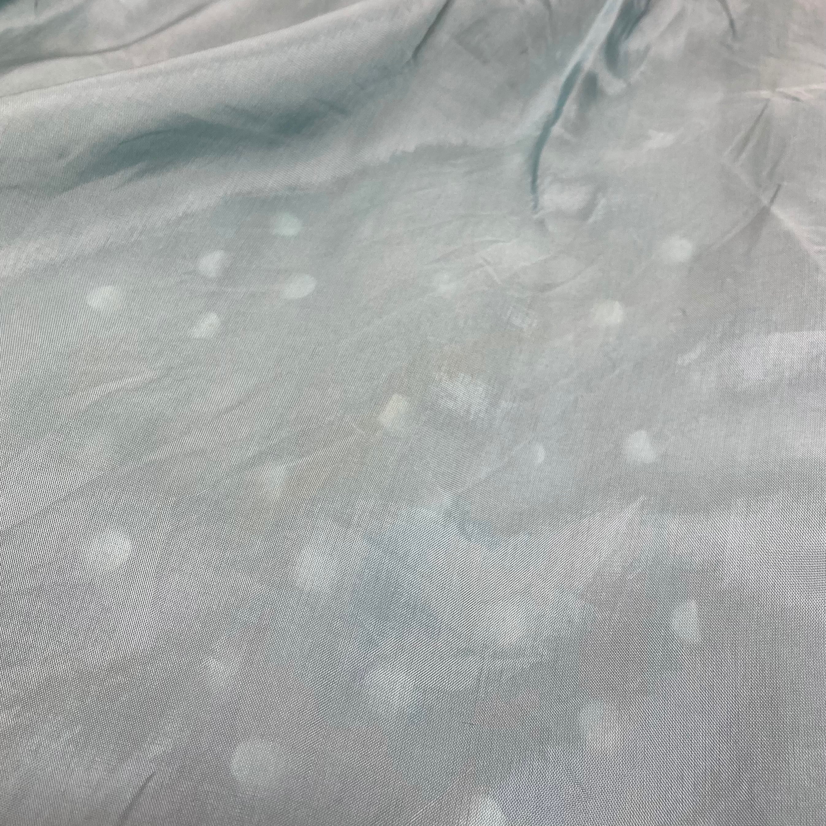 エメラルドグリーン地に白い水玉模様の透け感あるテキスタイル