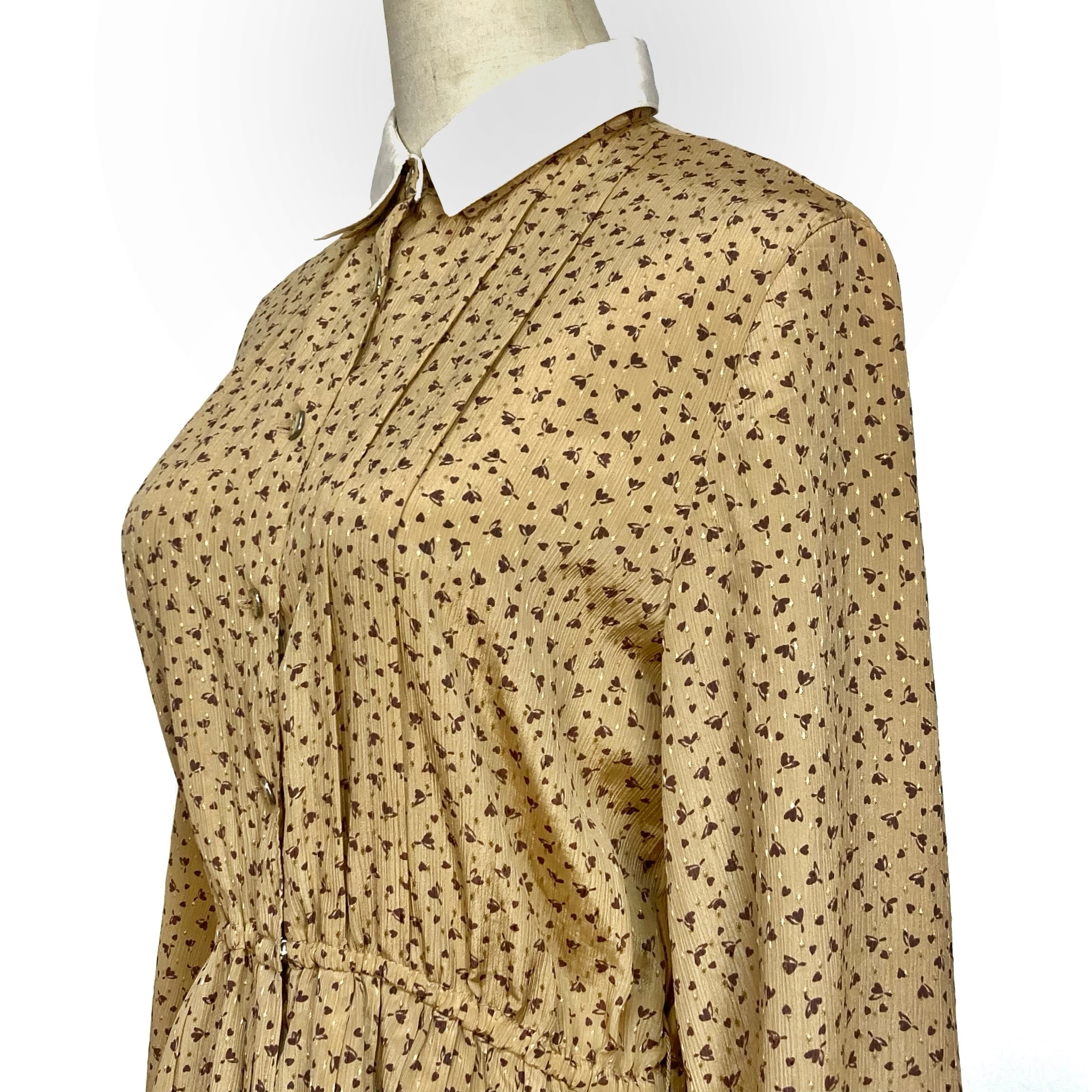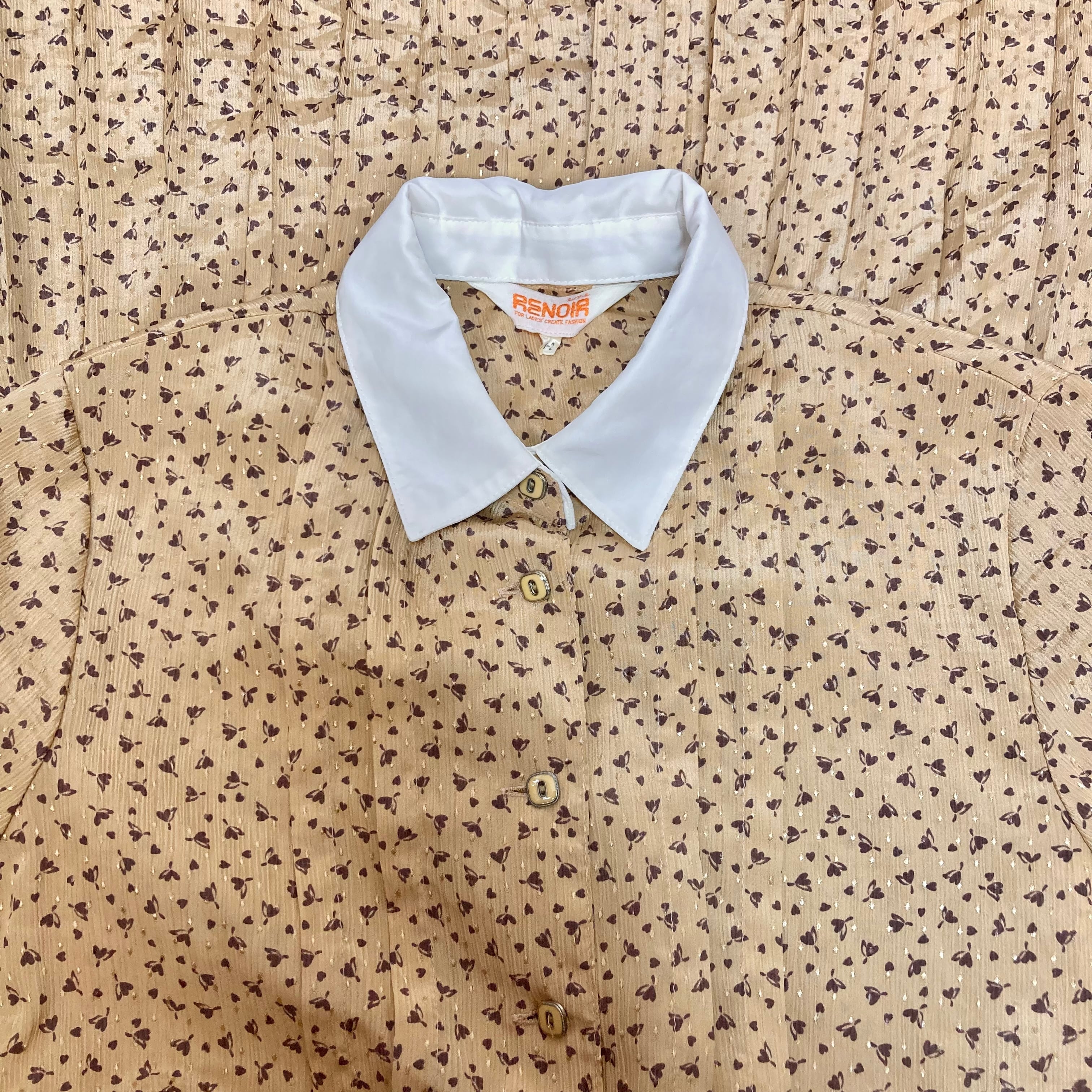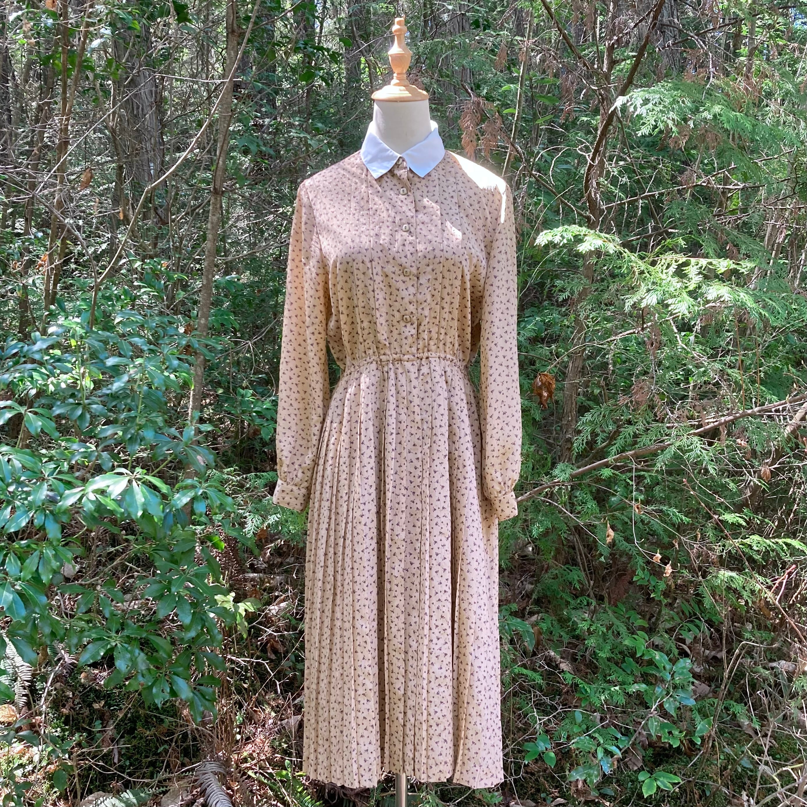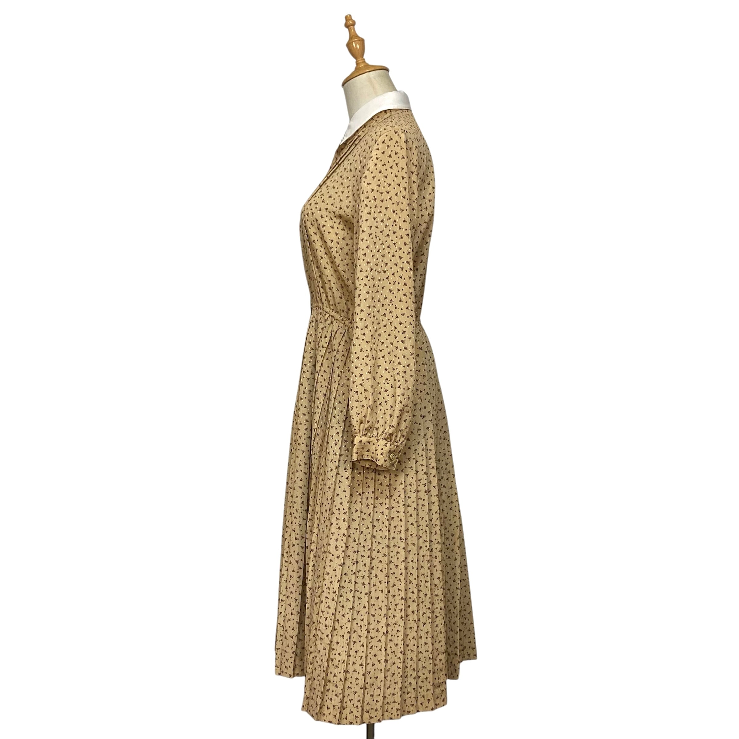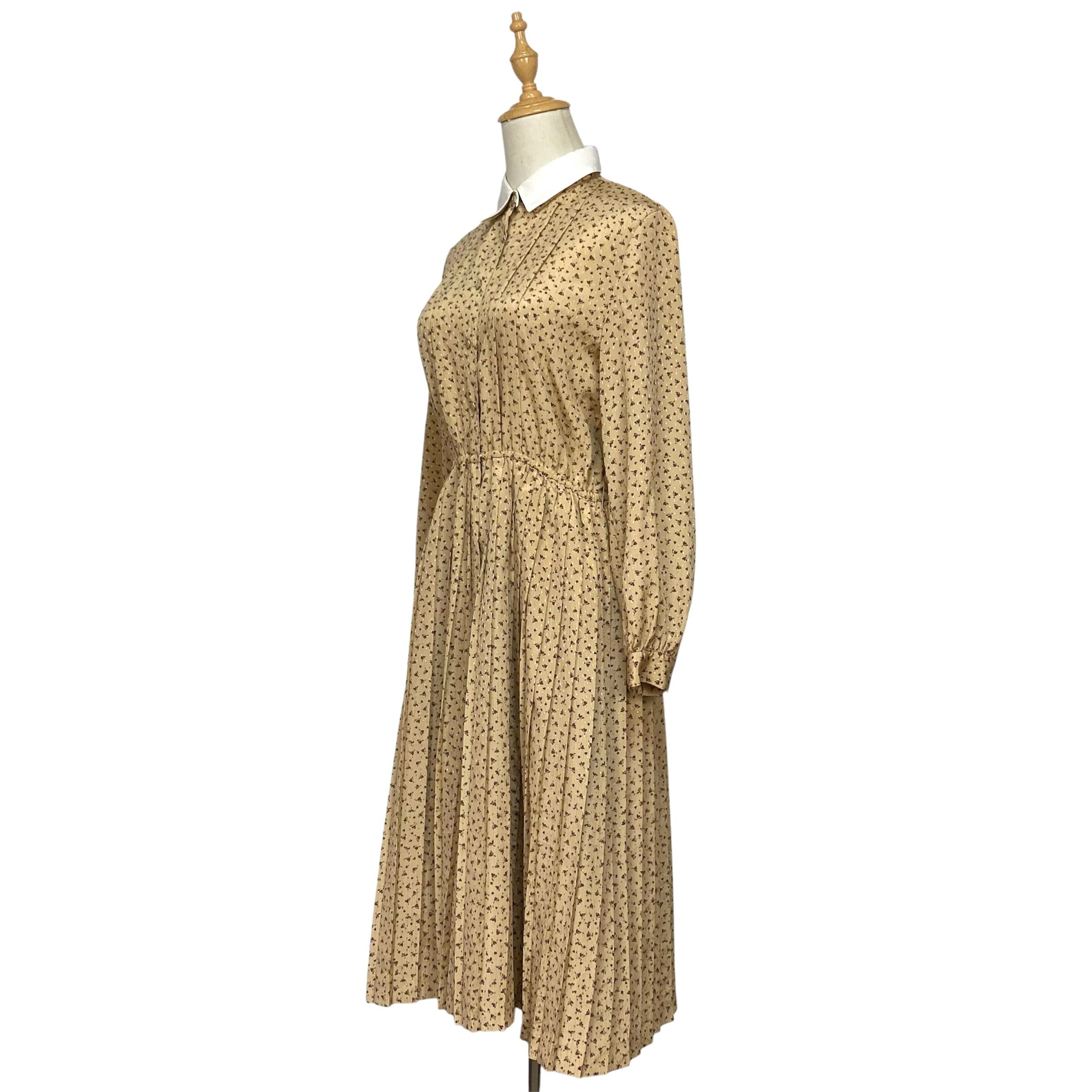 白衿のダブルカラーにプリーツスカートのレトロなシャツワンピース