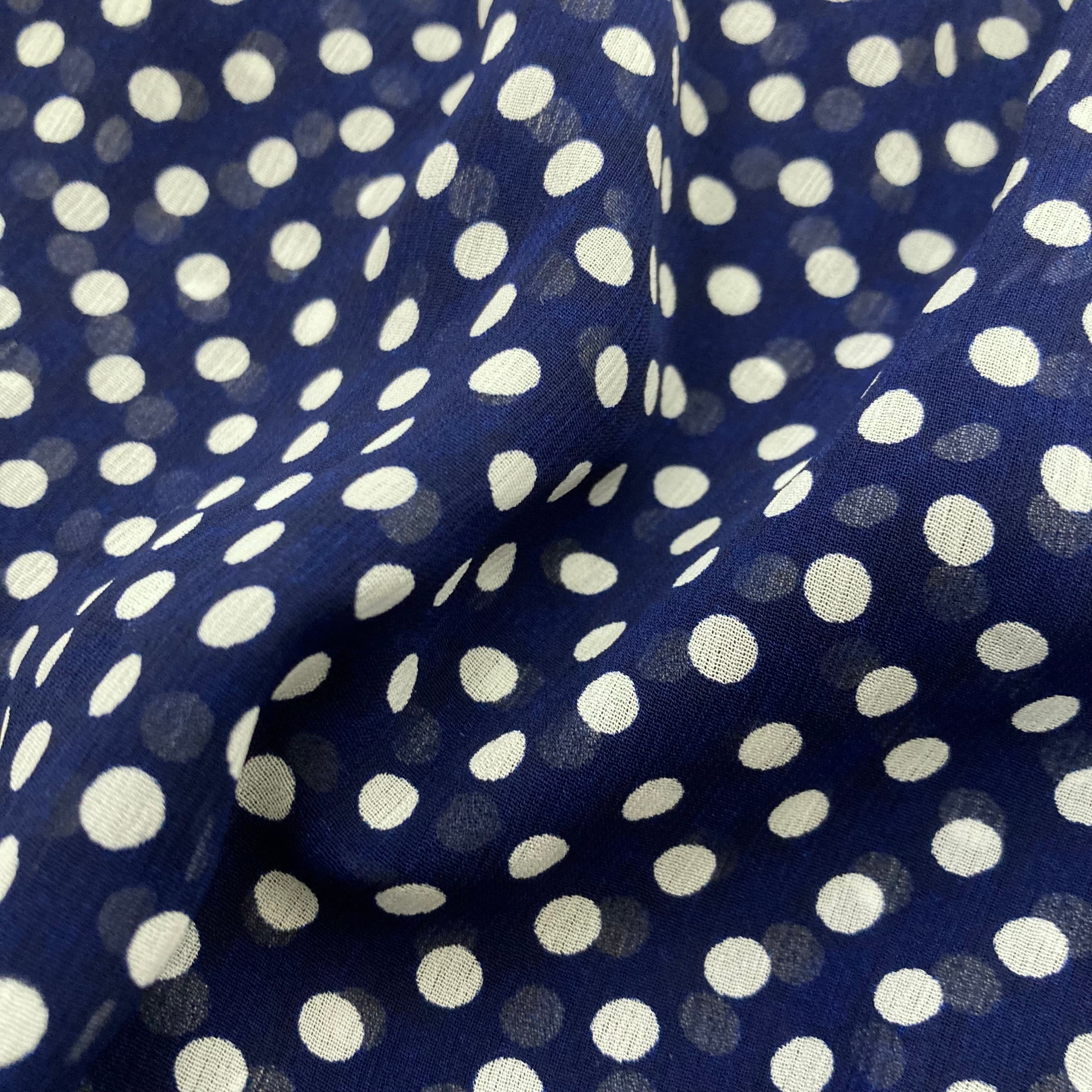 濃紺地に白い水玉模様の透け感あるテキスタイル