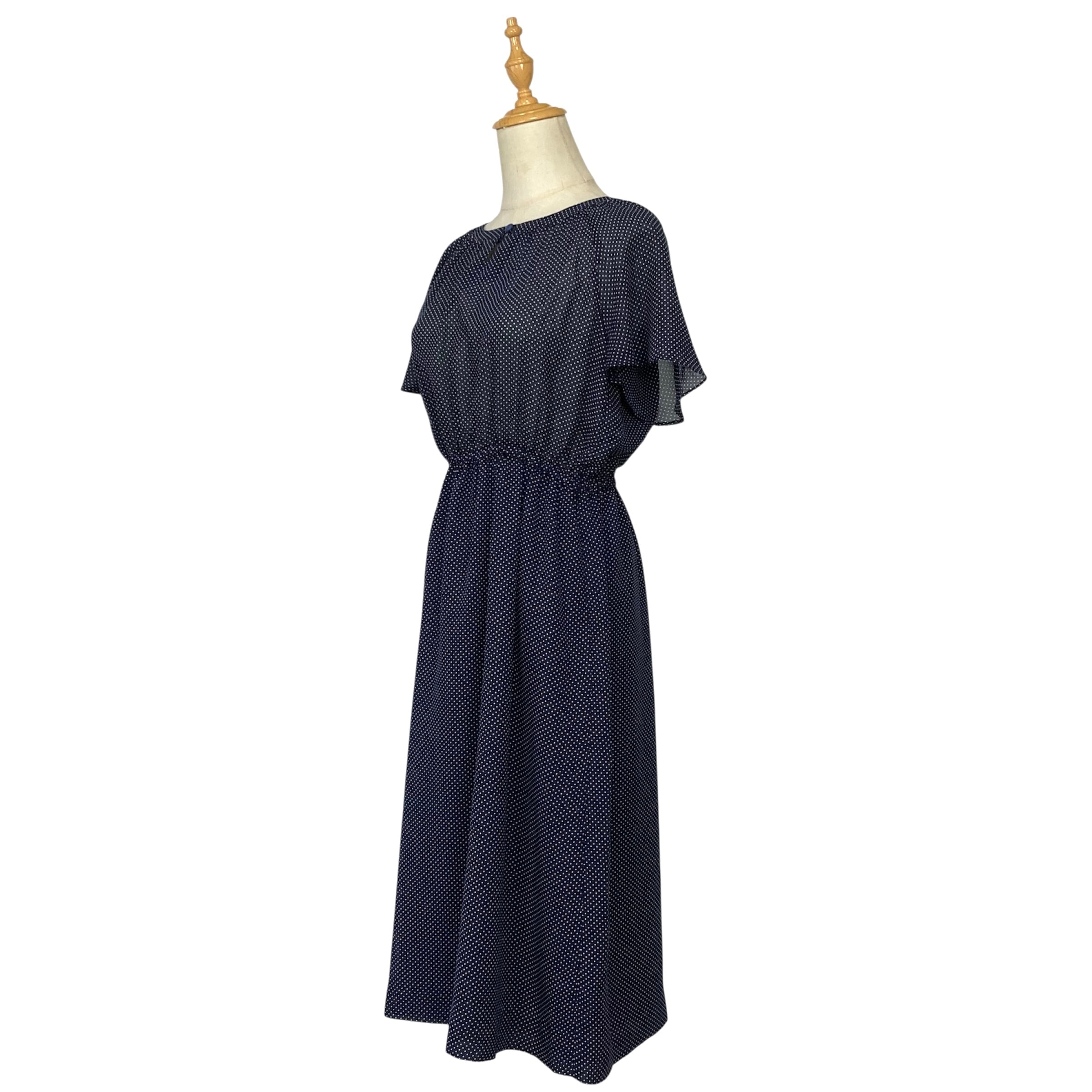 キーホールネックライン、フレア袖の軽やかな表情のエレガントなレトロワンピース