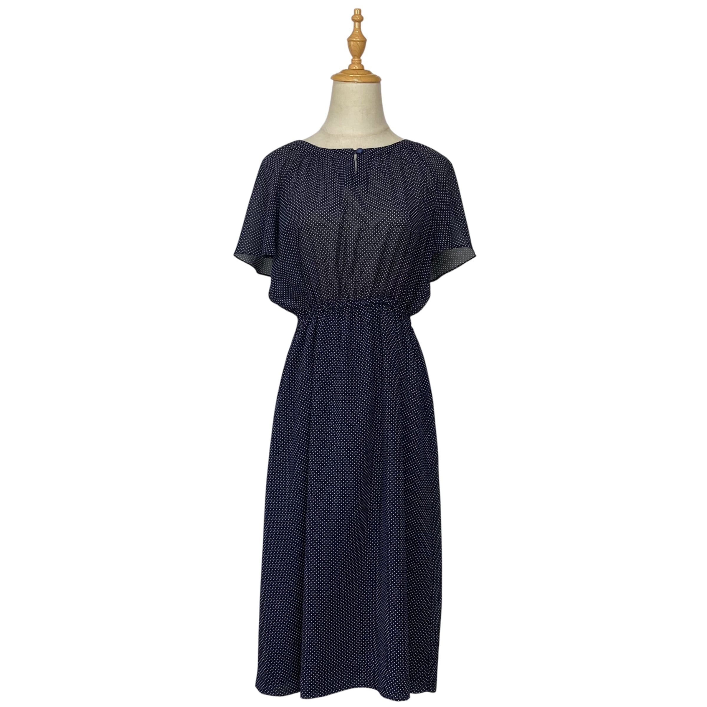 濃紺地に白いピンドットの透け感あるテキスタイル