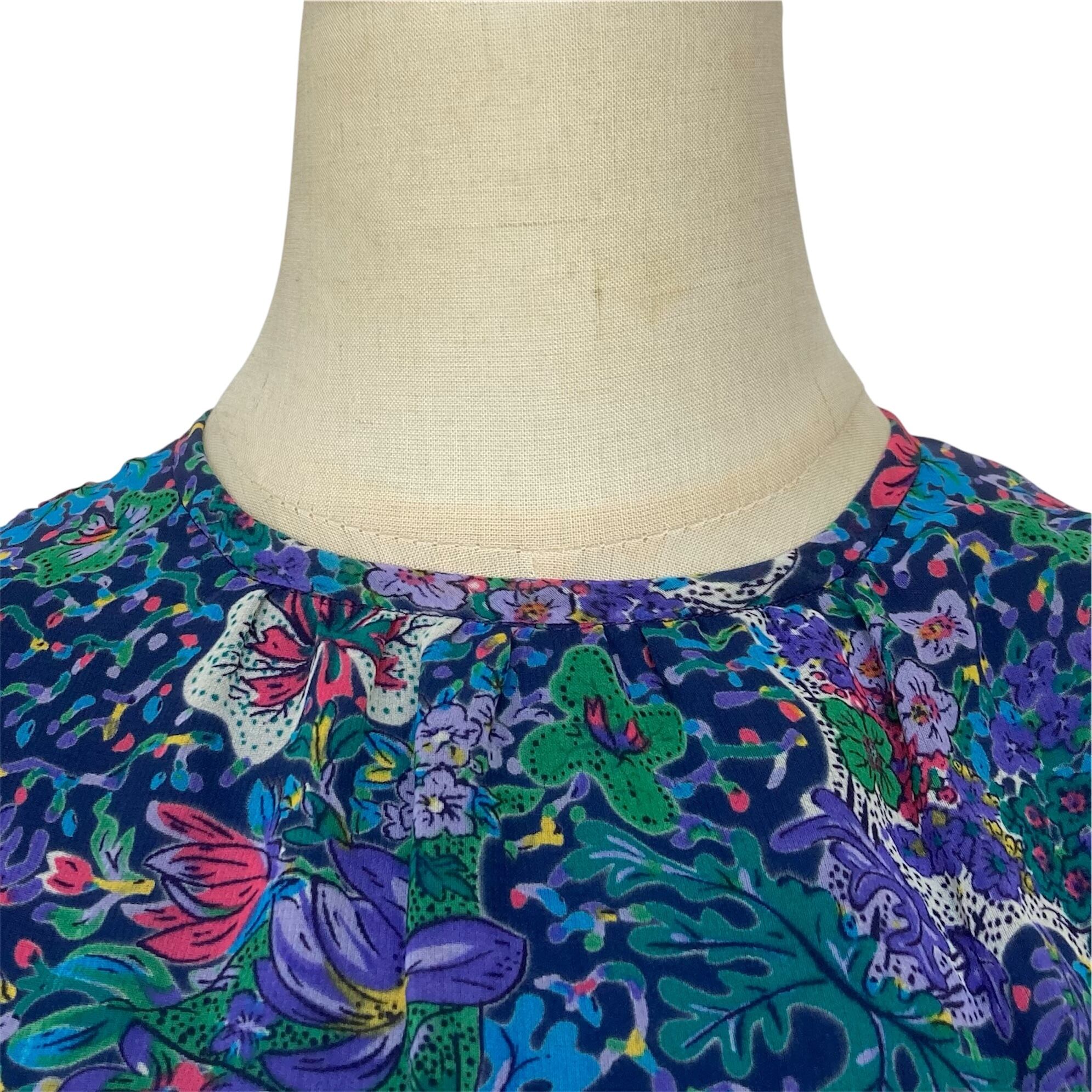 紺地にサイケデリックな花柄模様の透け感あるテキスタイル