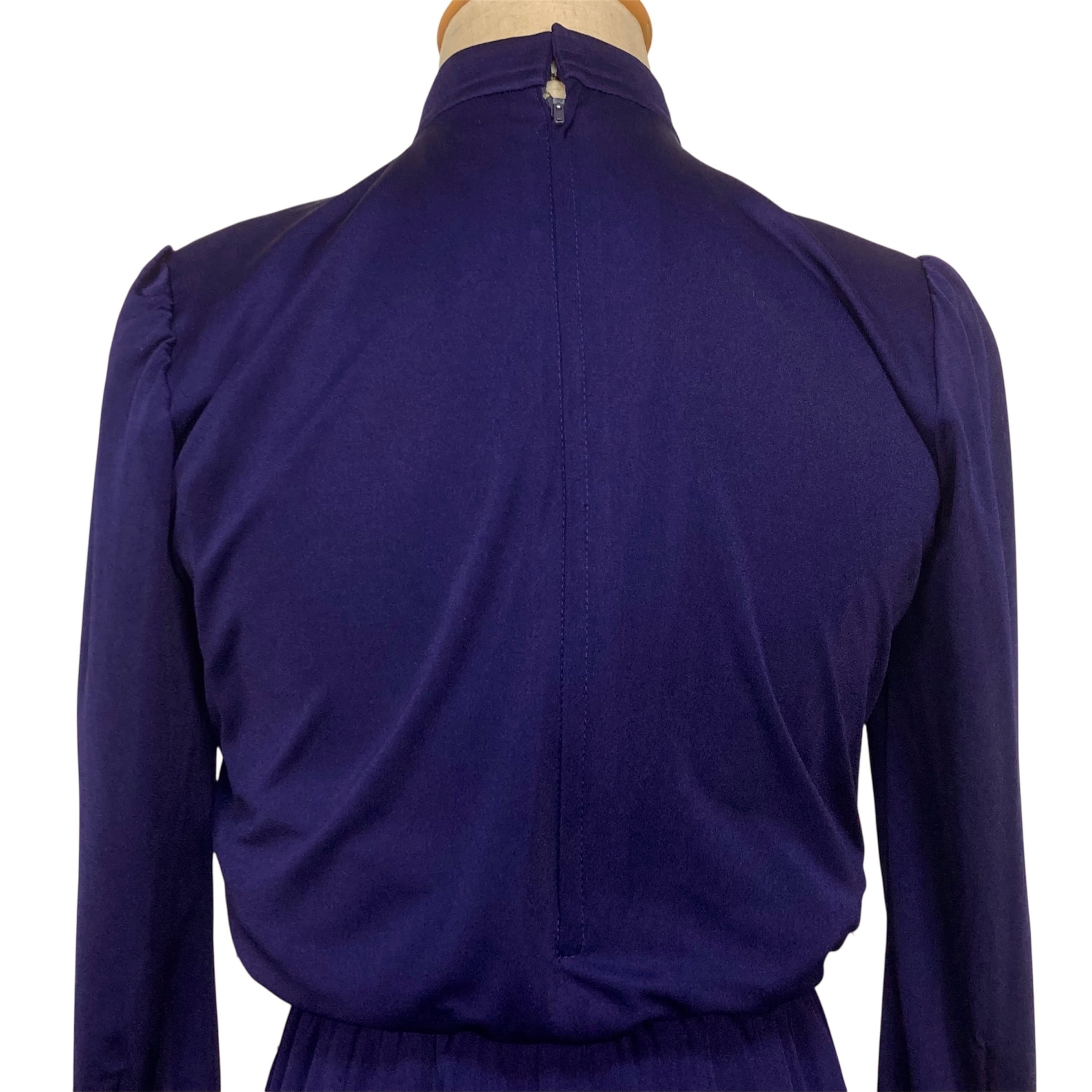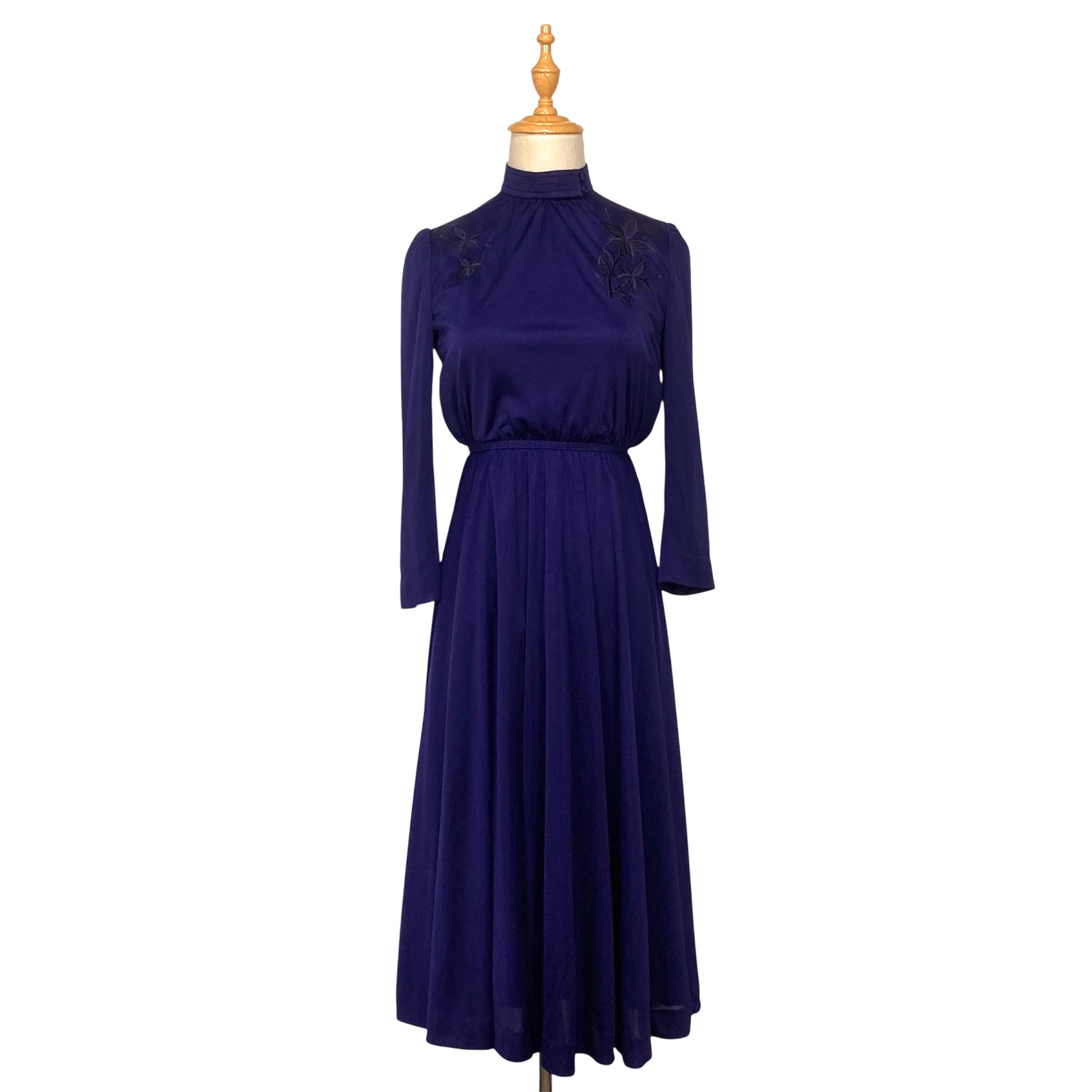 飾りボタンのあるプリーツスタンドカラーにフレアスカートのレトロワンピース