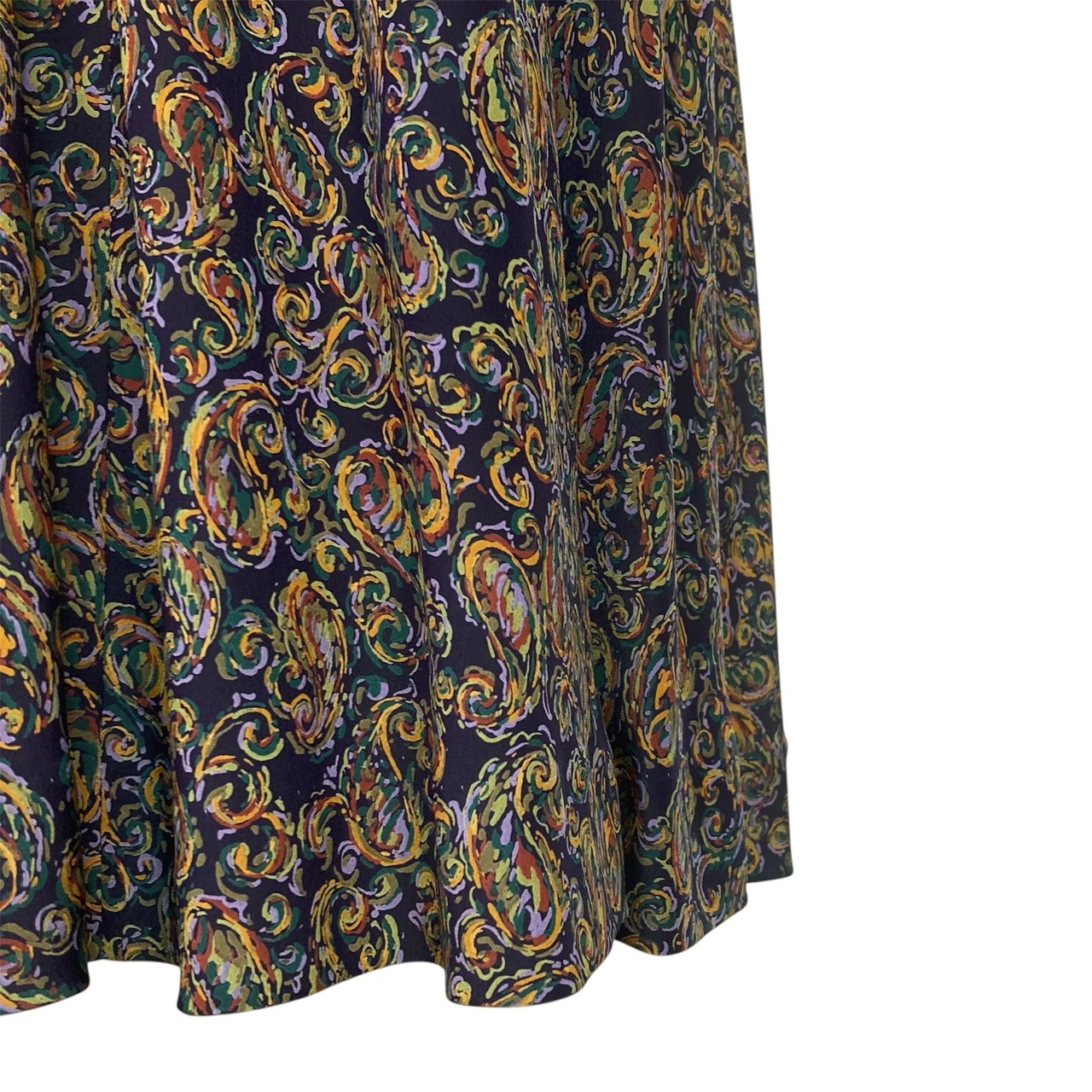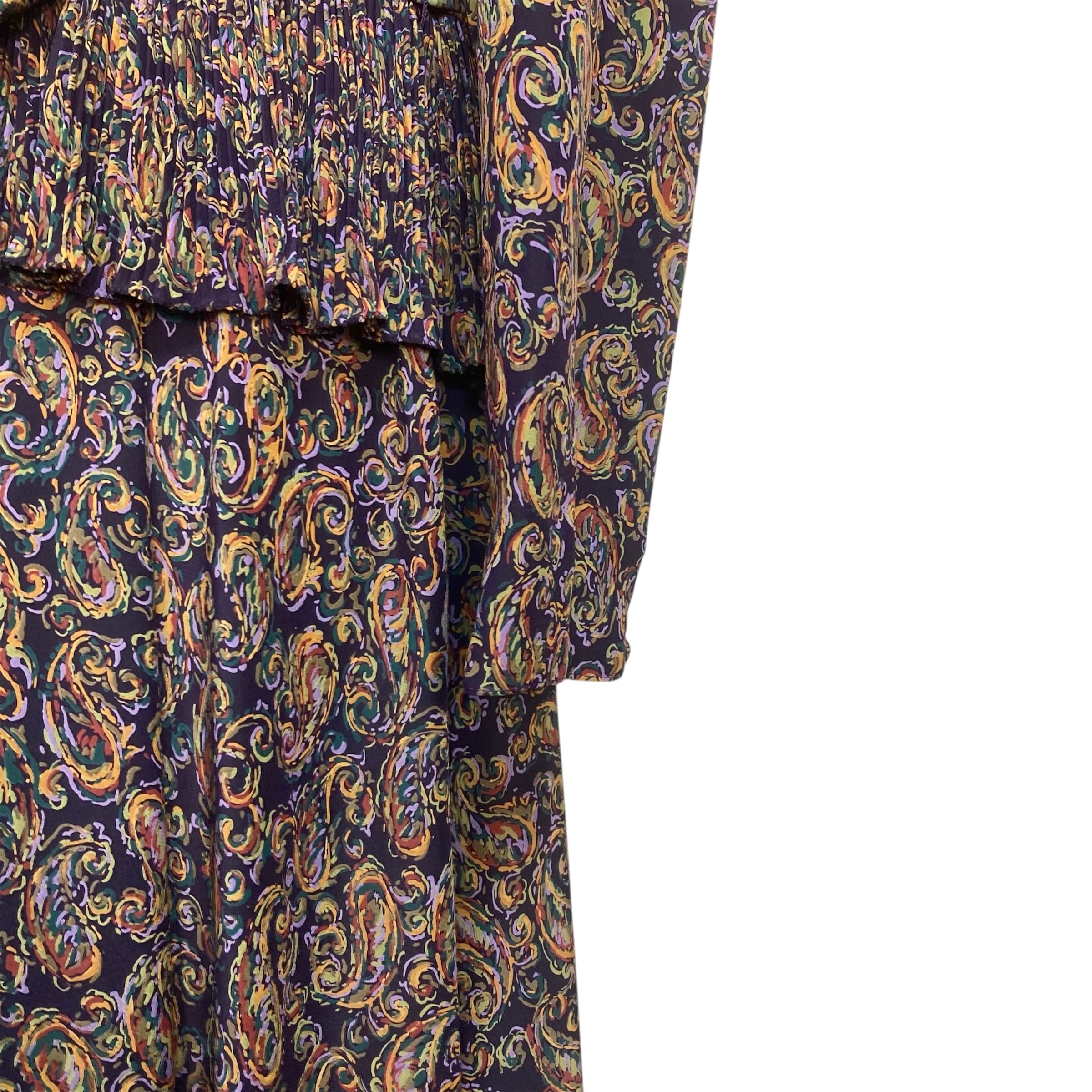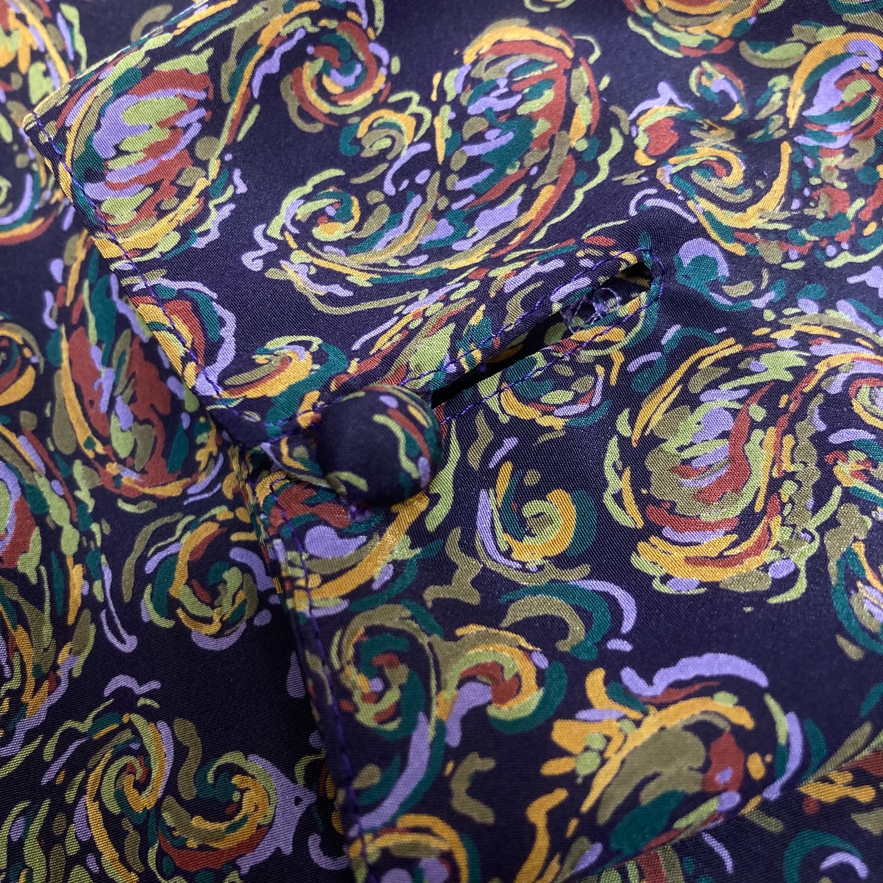 濃い紫色地にゴッホの筆致のような渦巻くペイズリー柄が特徴のテキスタイル