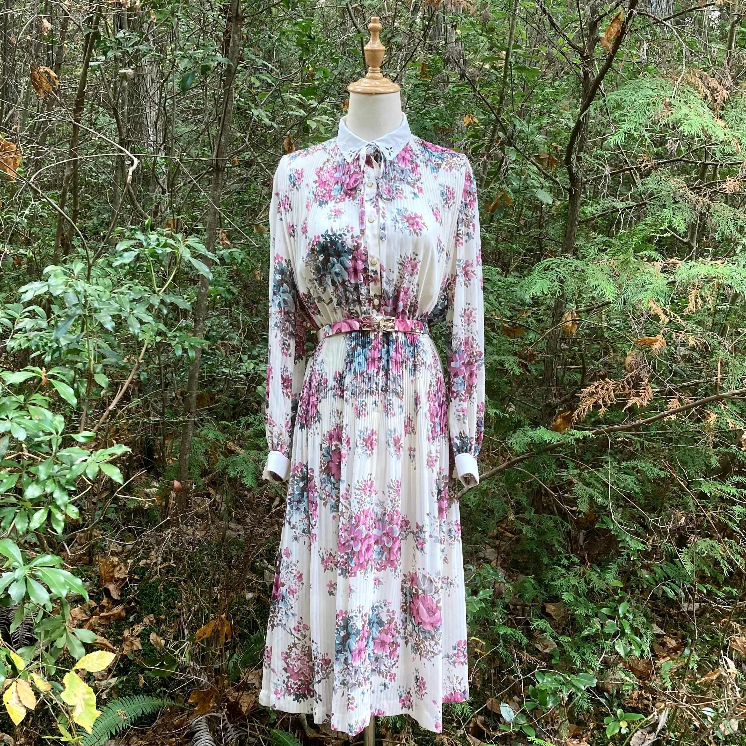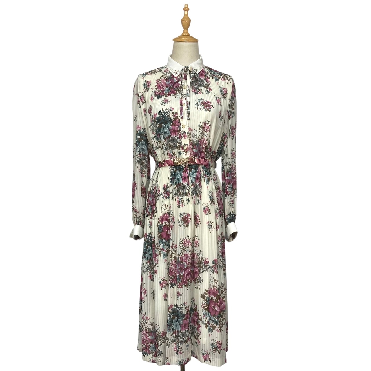 カットワーク刺繍の白衿にスカラップ刺繍のダブルカフスがロマンティックなワンピース