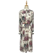 グラデーションなストライプ柄のオフホワイト地にブーケ柄がプリントされた透け感あるテキスタイル