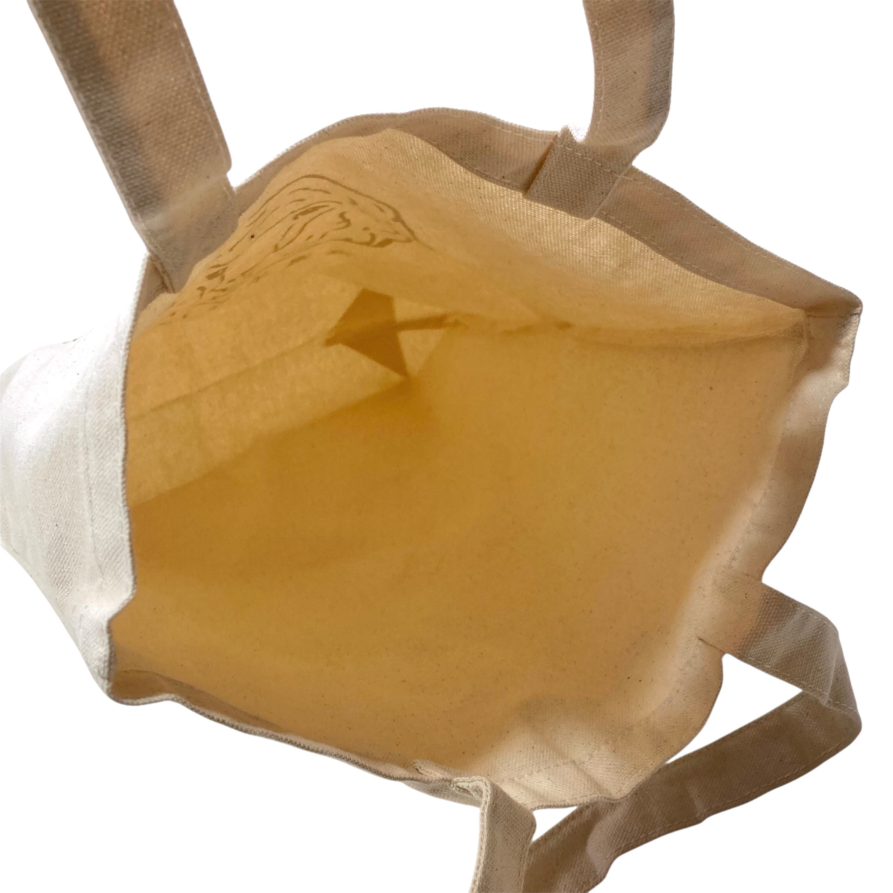 手描きデザインのロゴと店名がシルクプリントされたトートバッグです