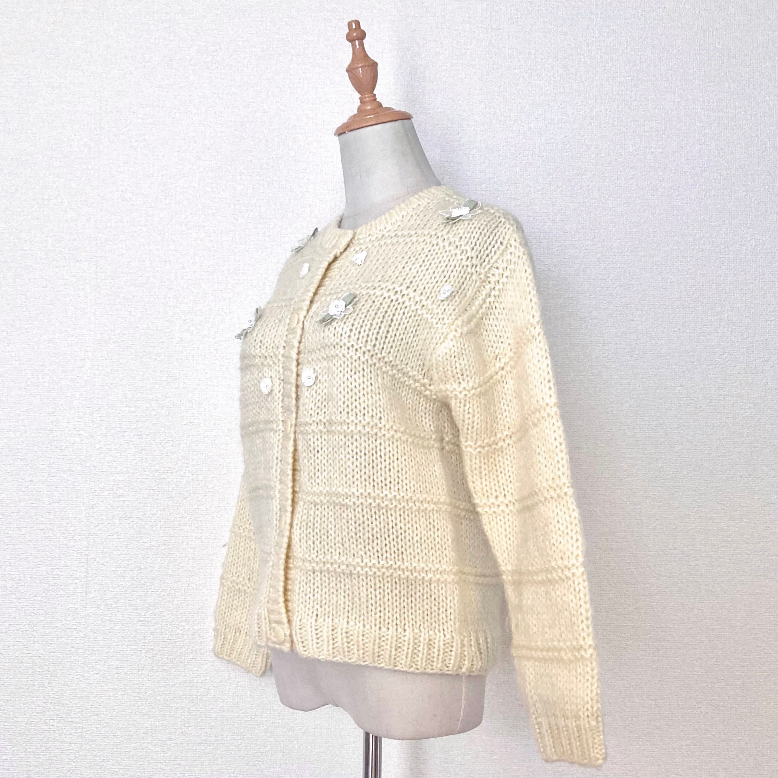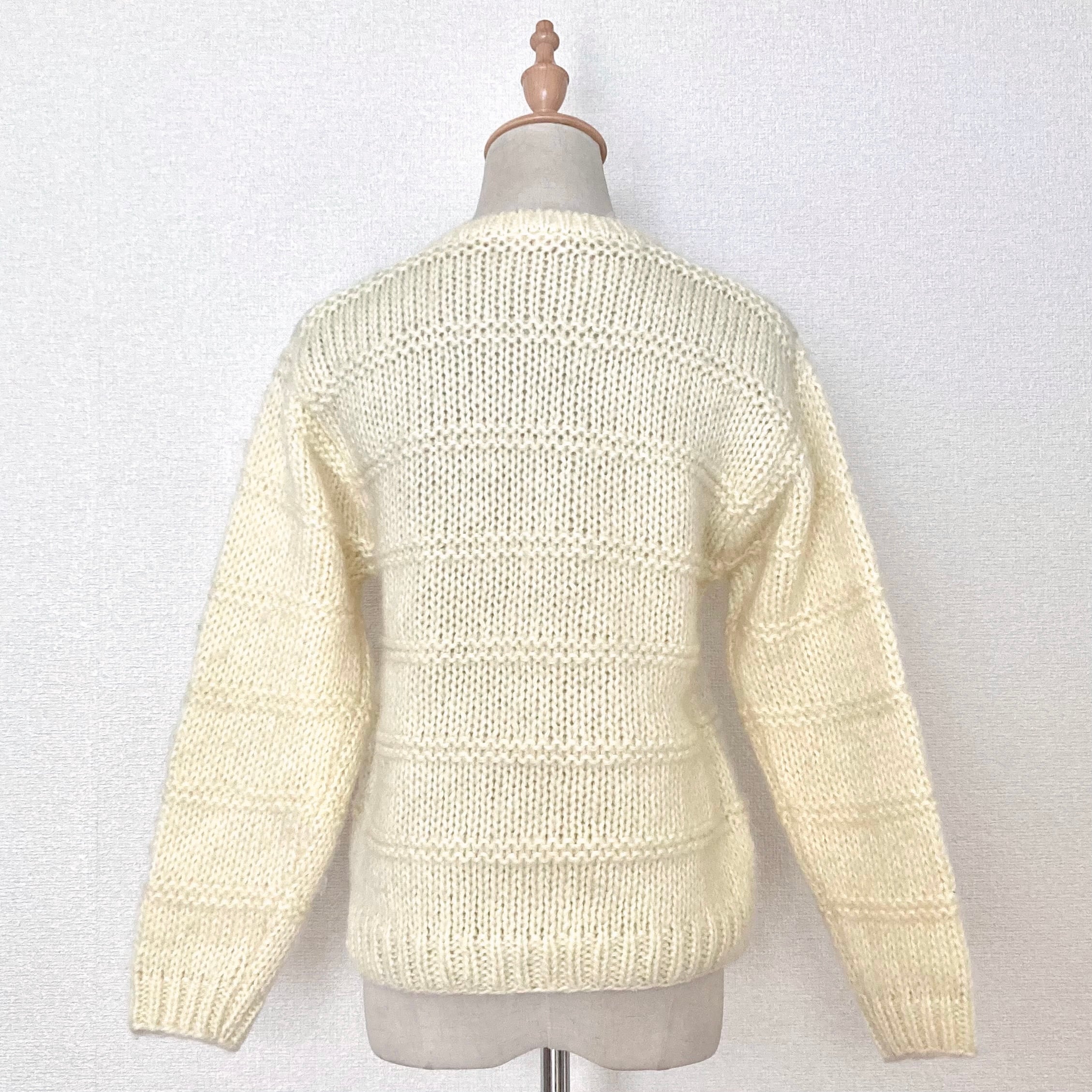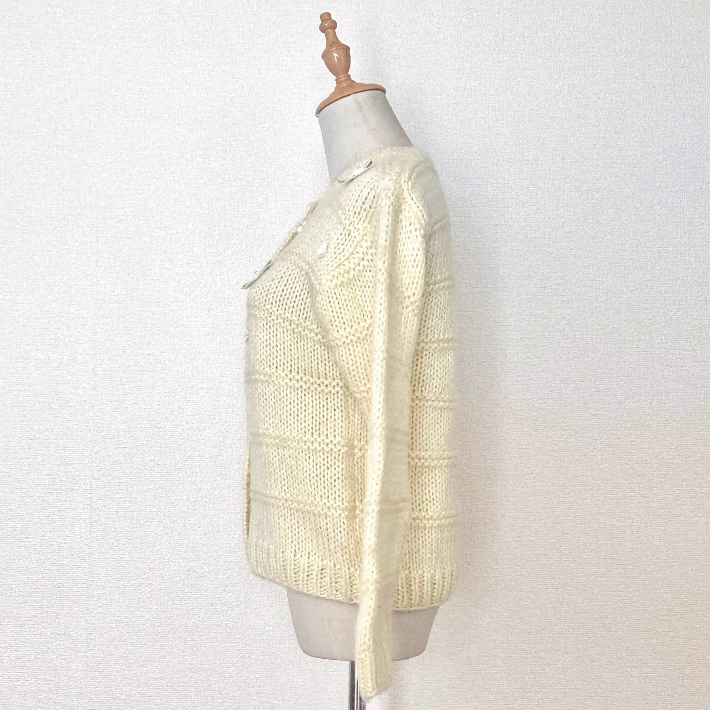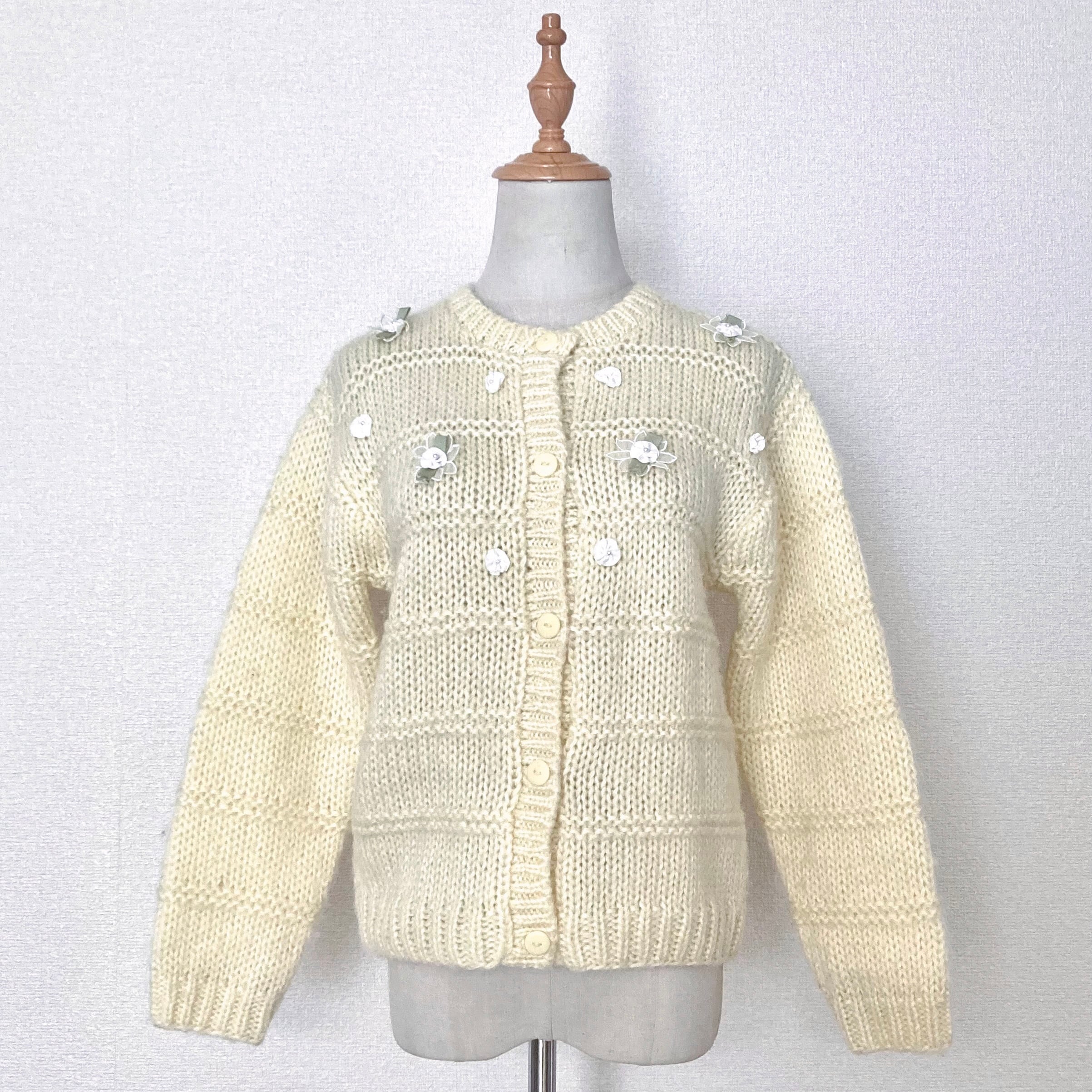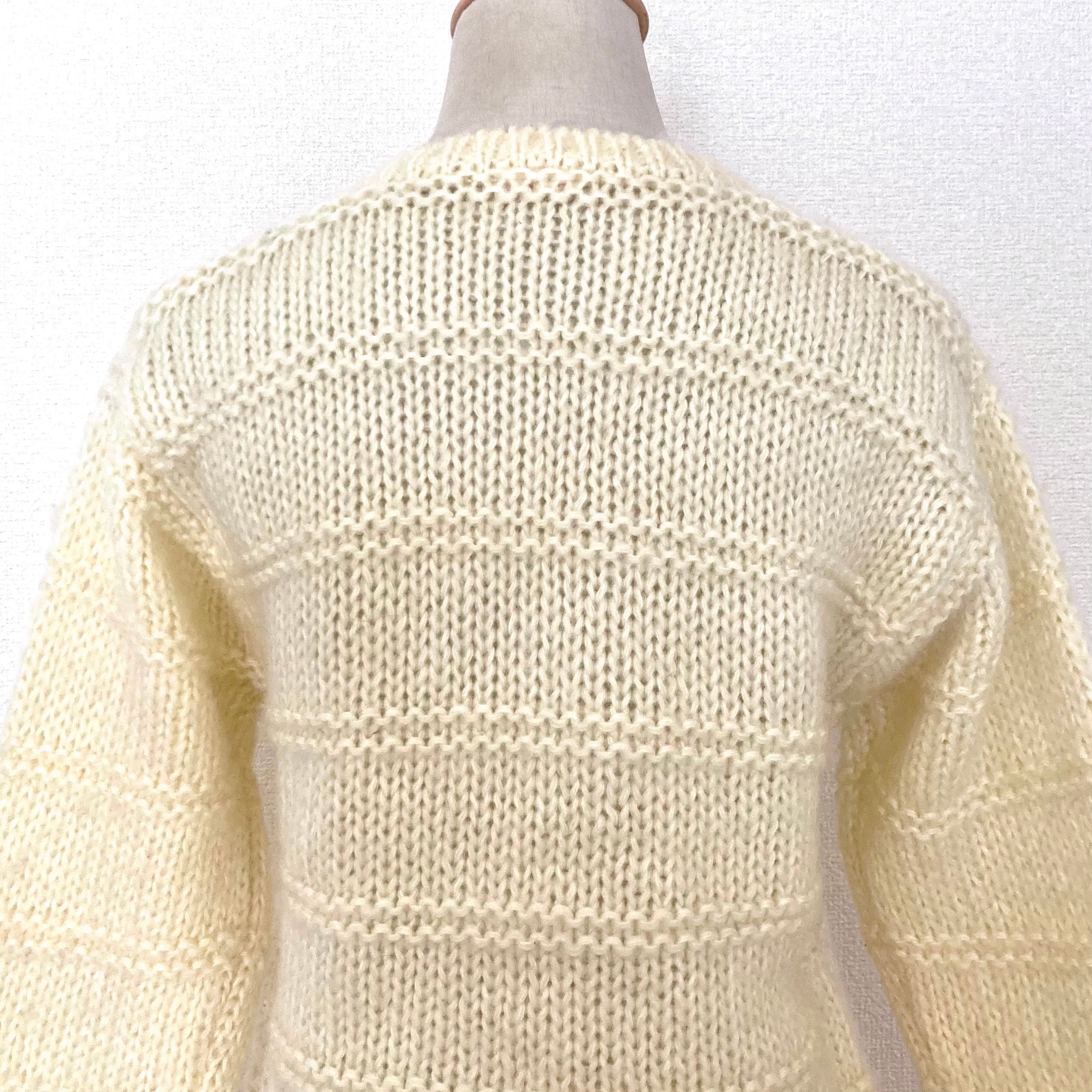 全体的に編み模様で立体的なストライプ柄になったカーディガン