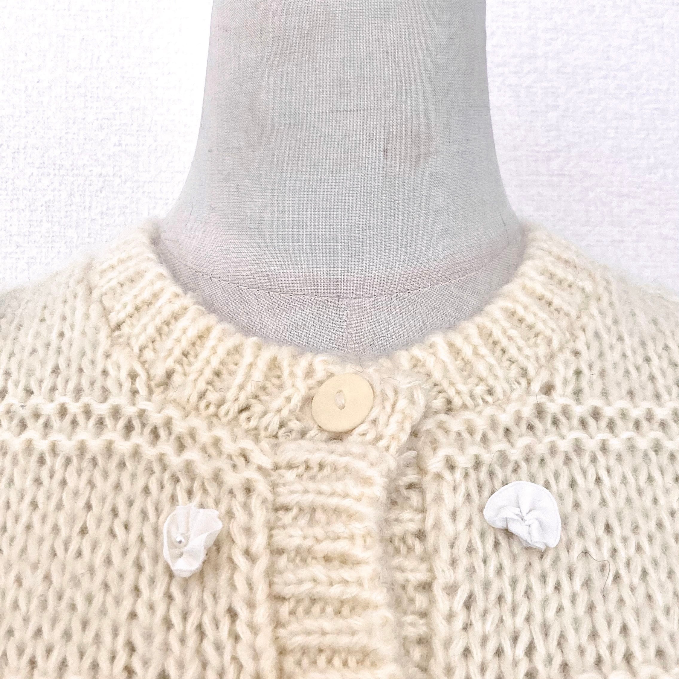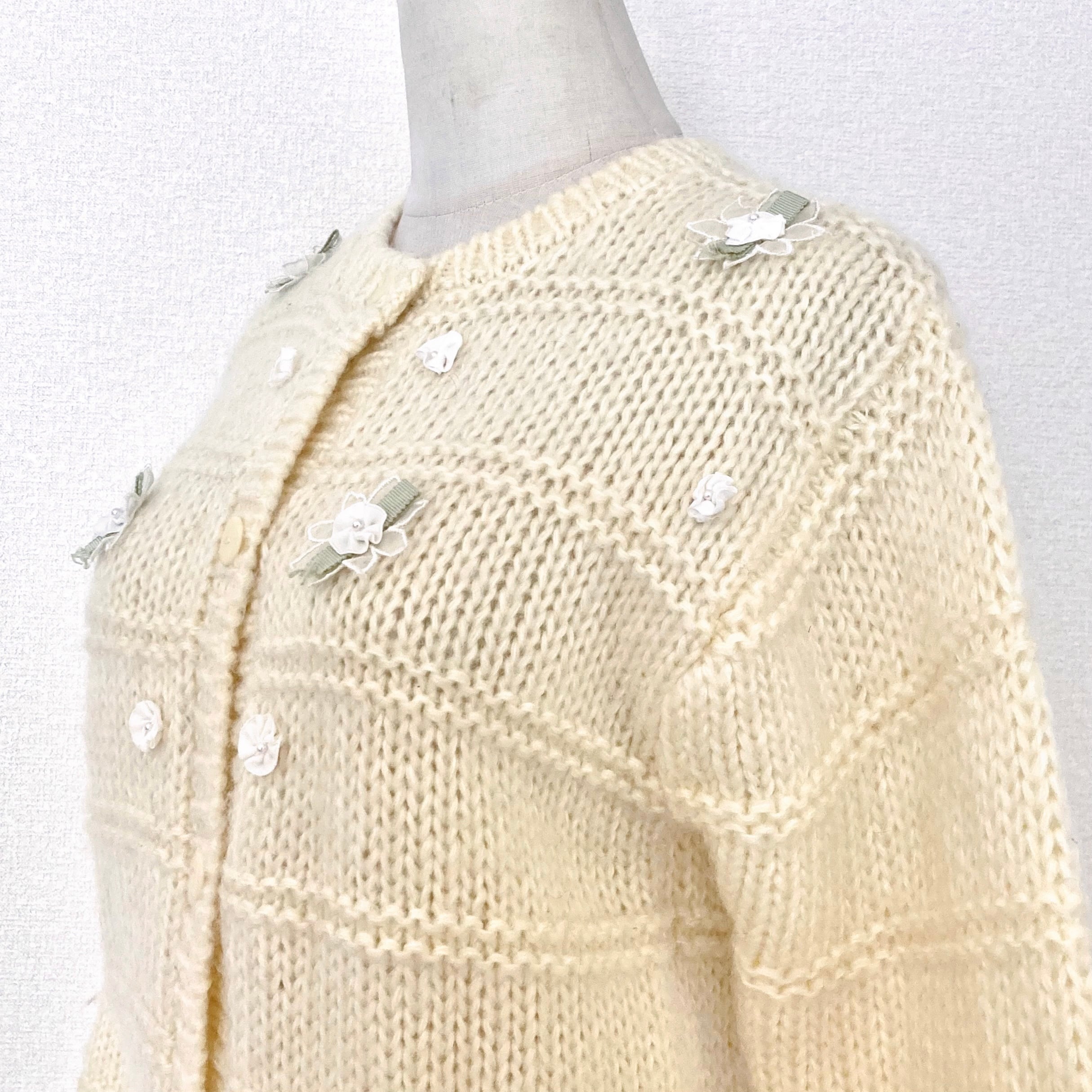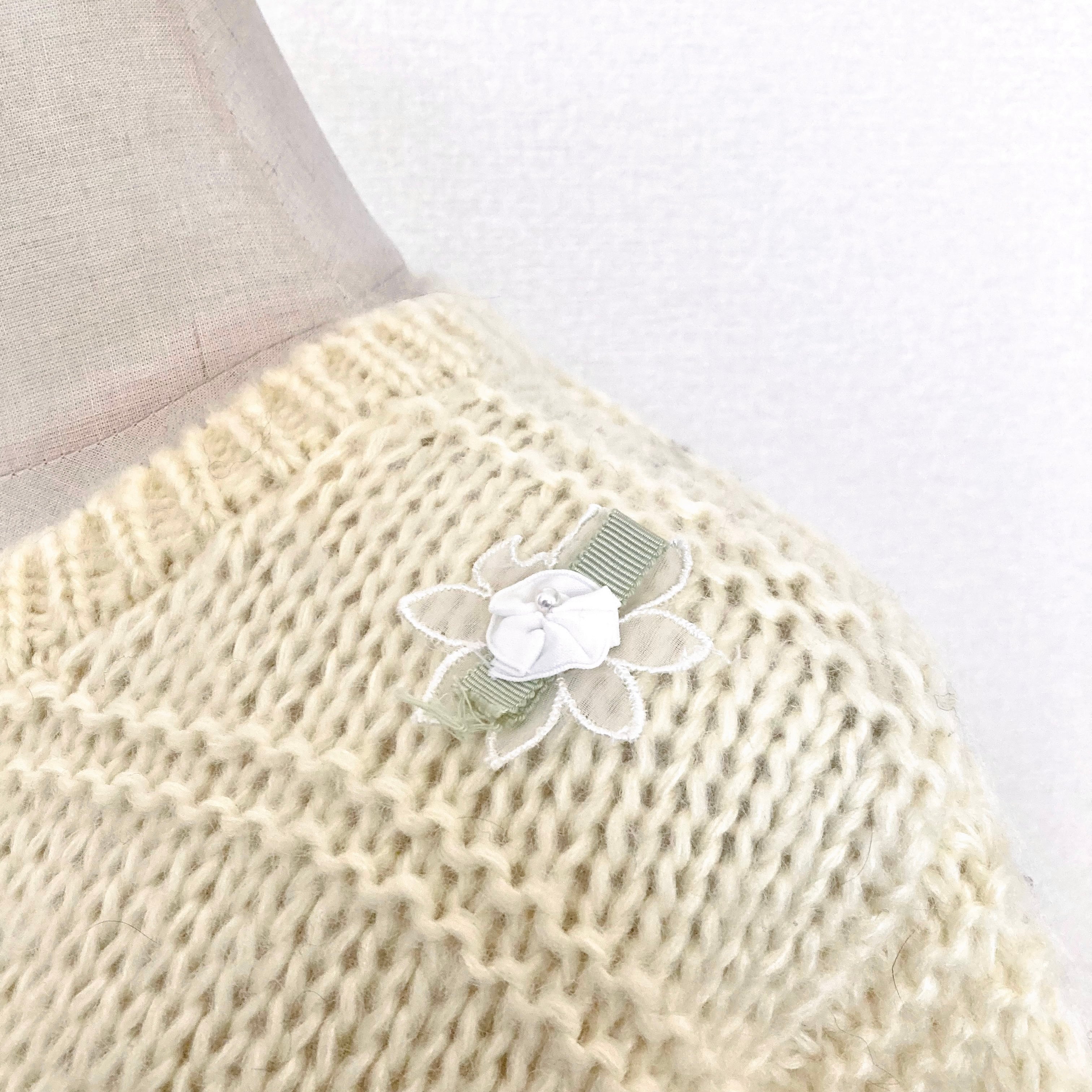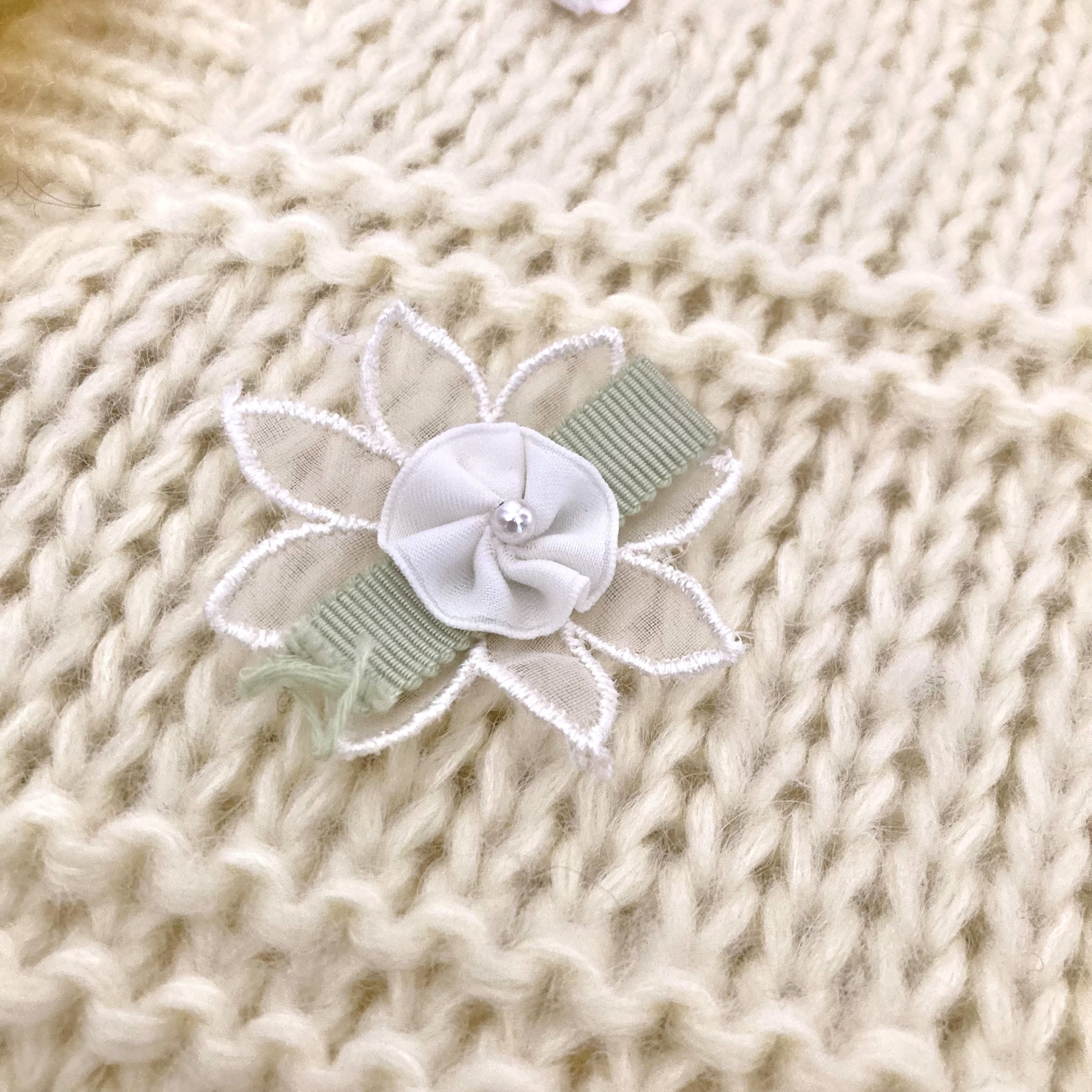 オフホワイト地に花モチーフが付いたローゲージの中厚手のテキスタイル