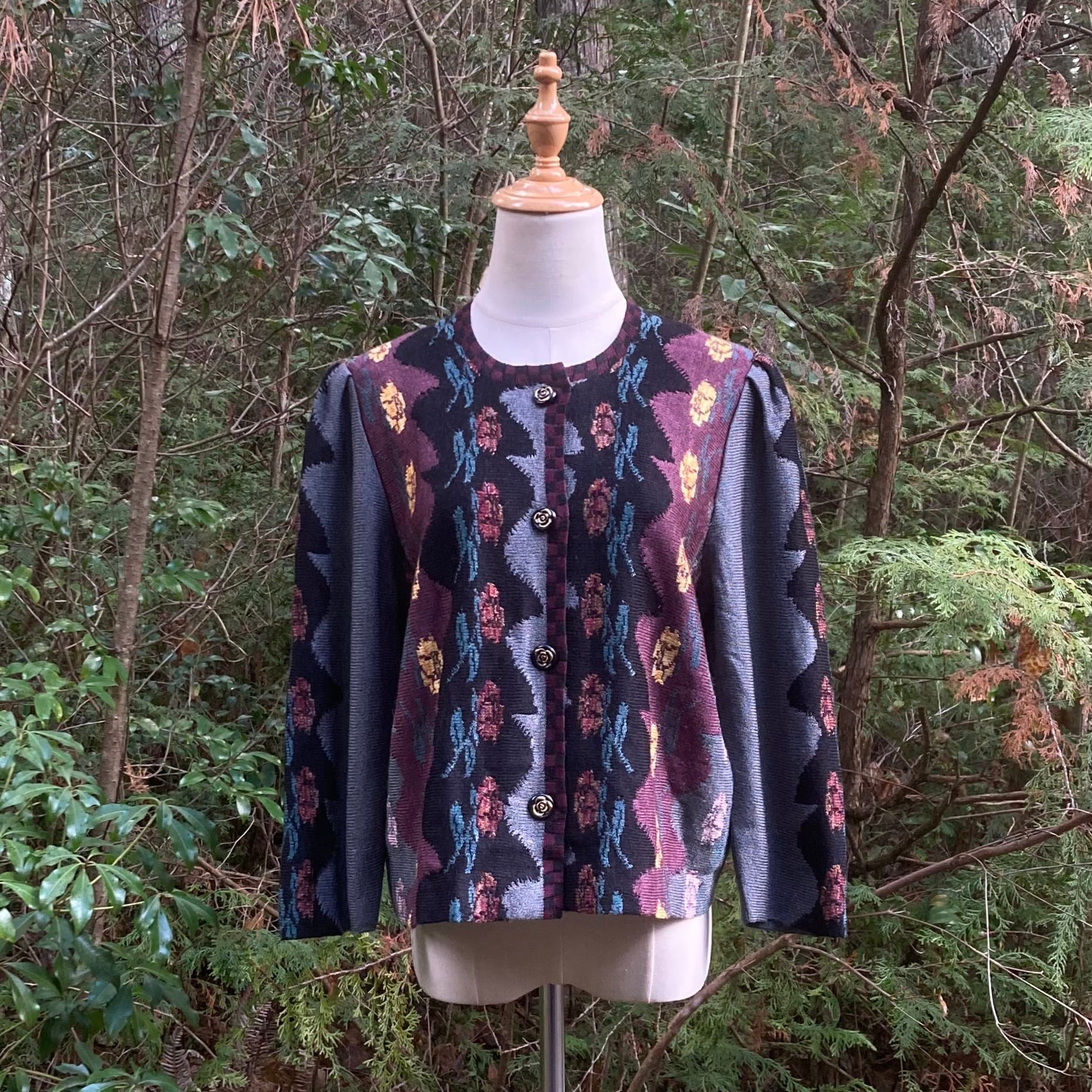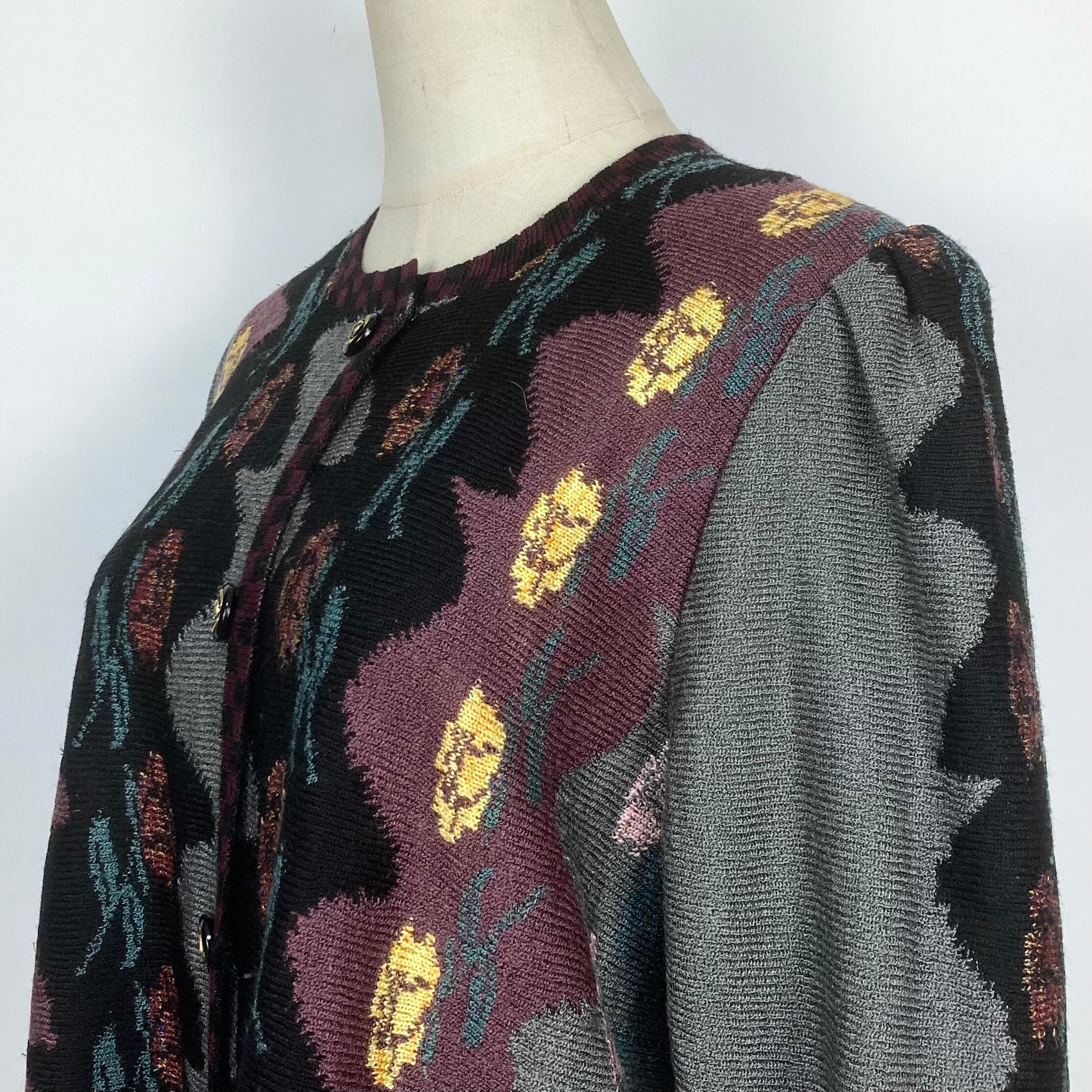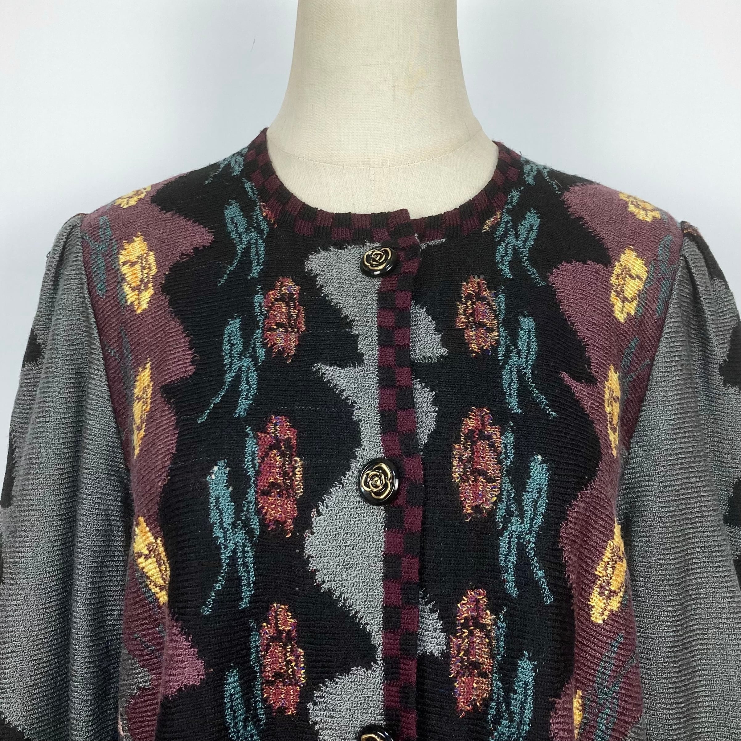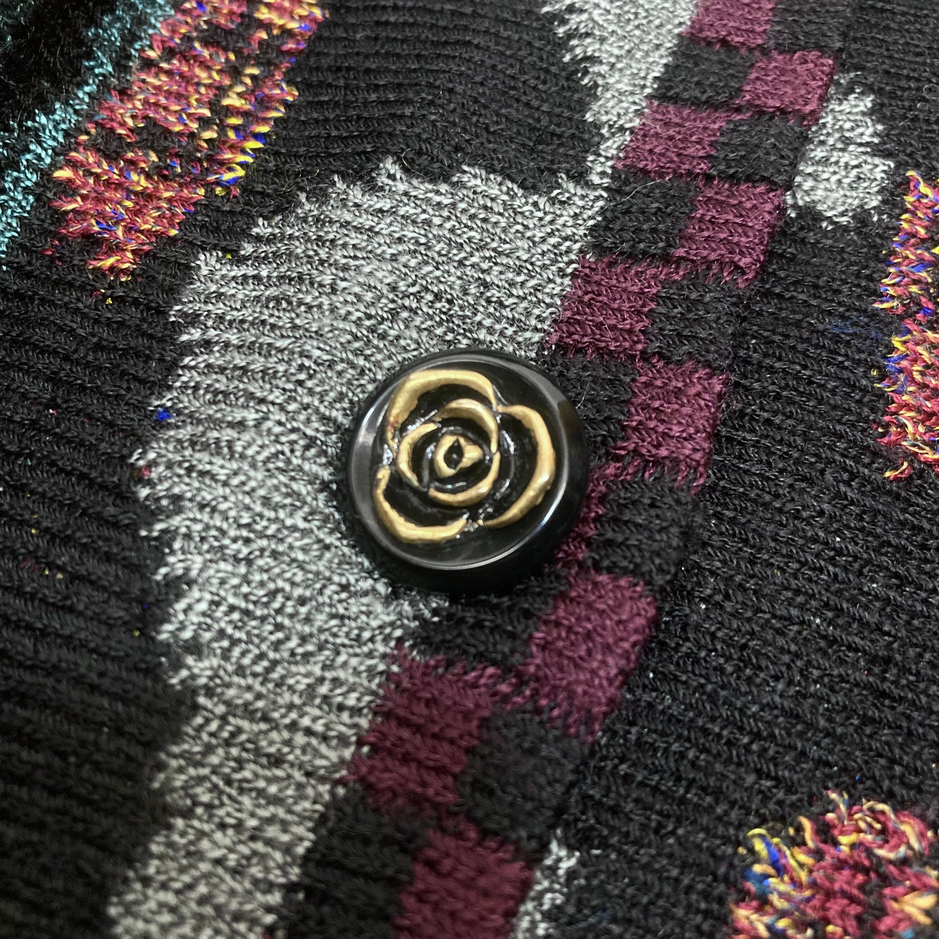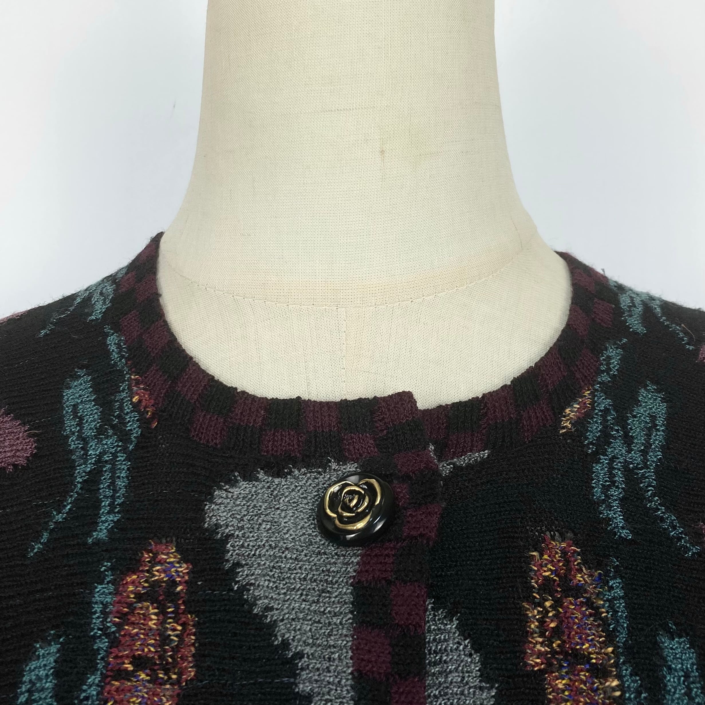 薔薇モチーフのボタン付きの薔薇づくしのレトロ柄カーディガン