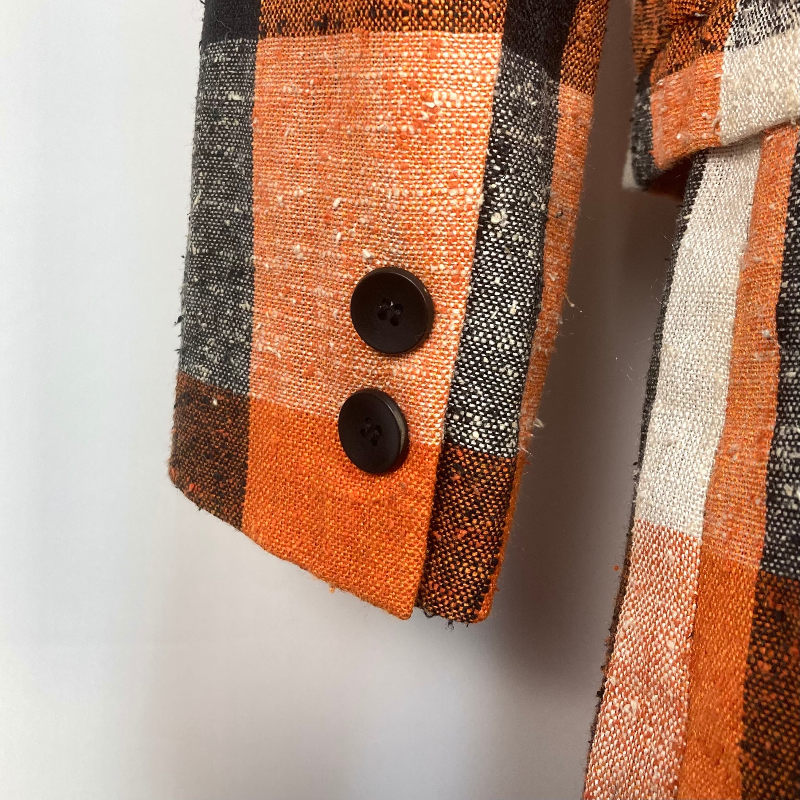 白、黒、オレンジ色からなるざっくりとした質感のネップ生地