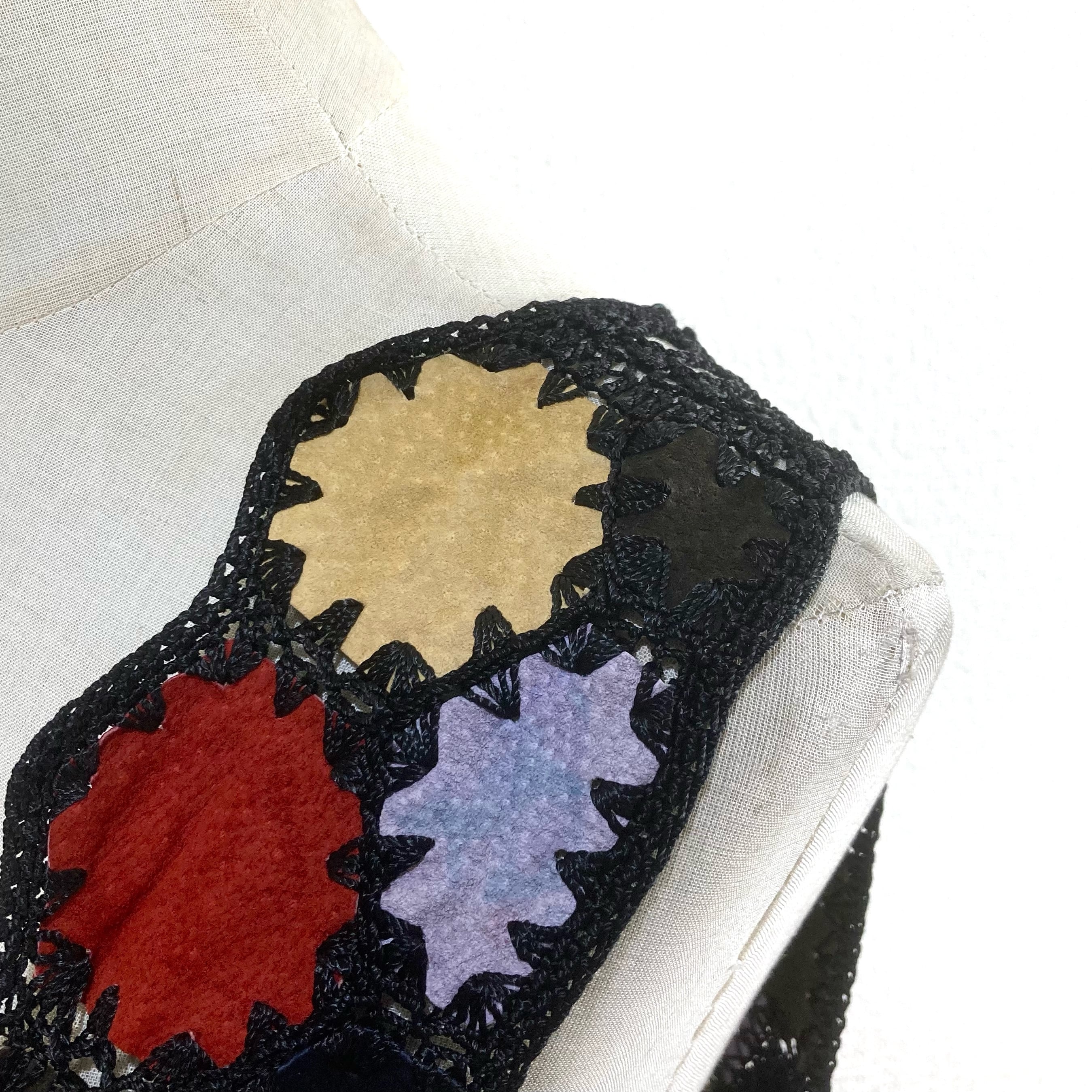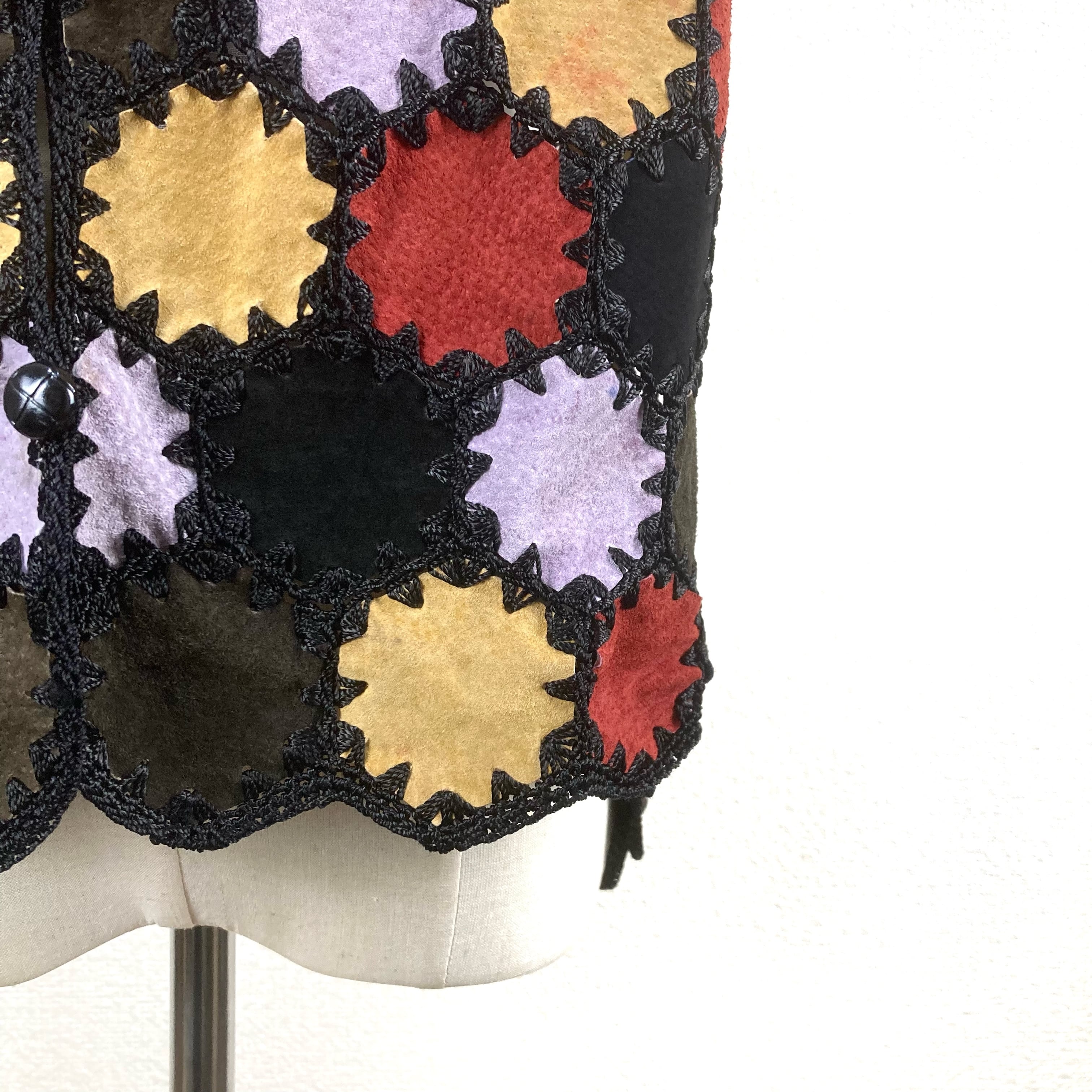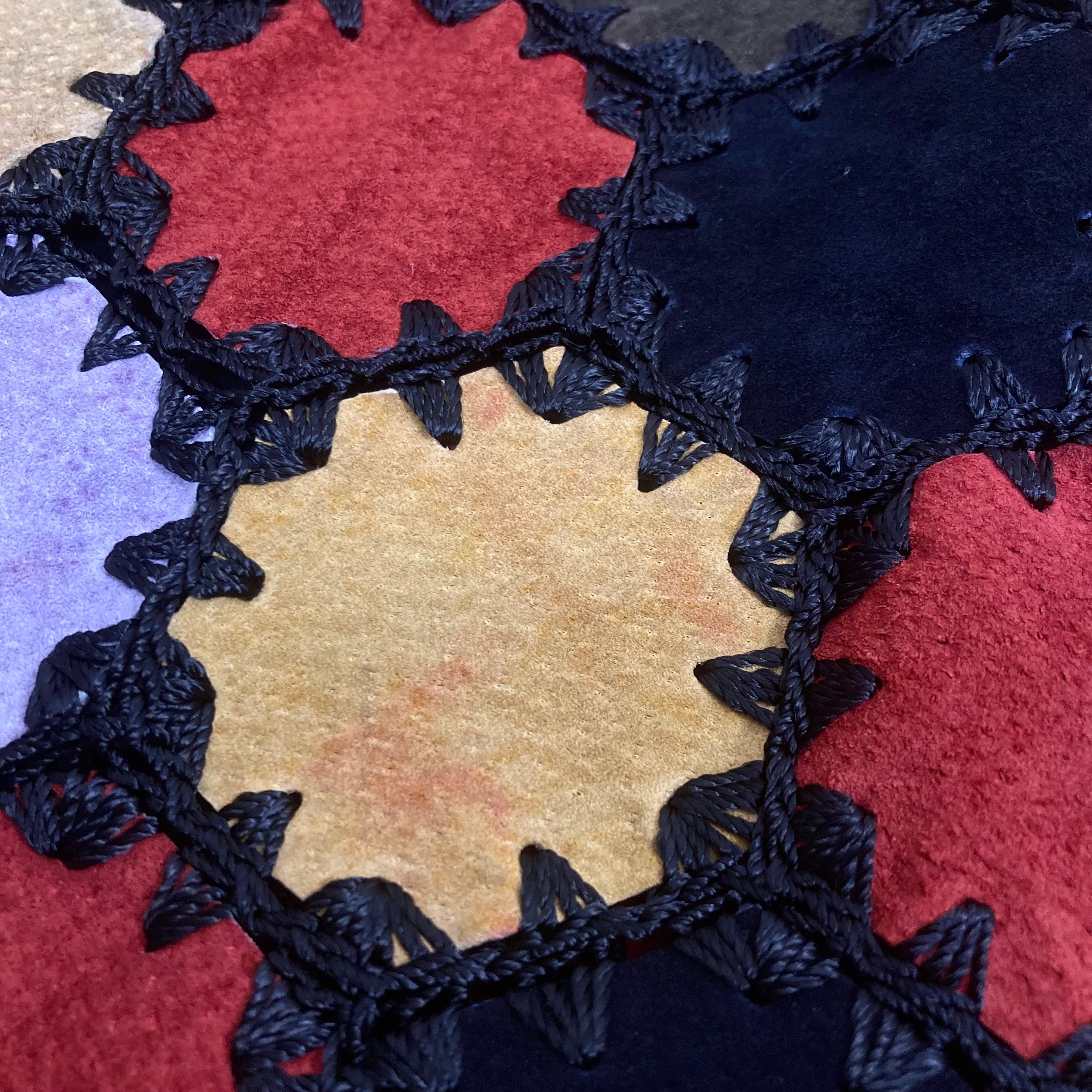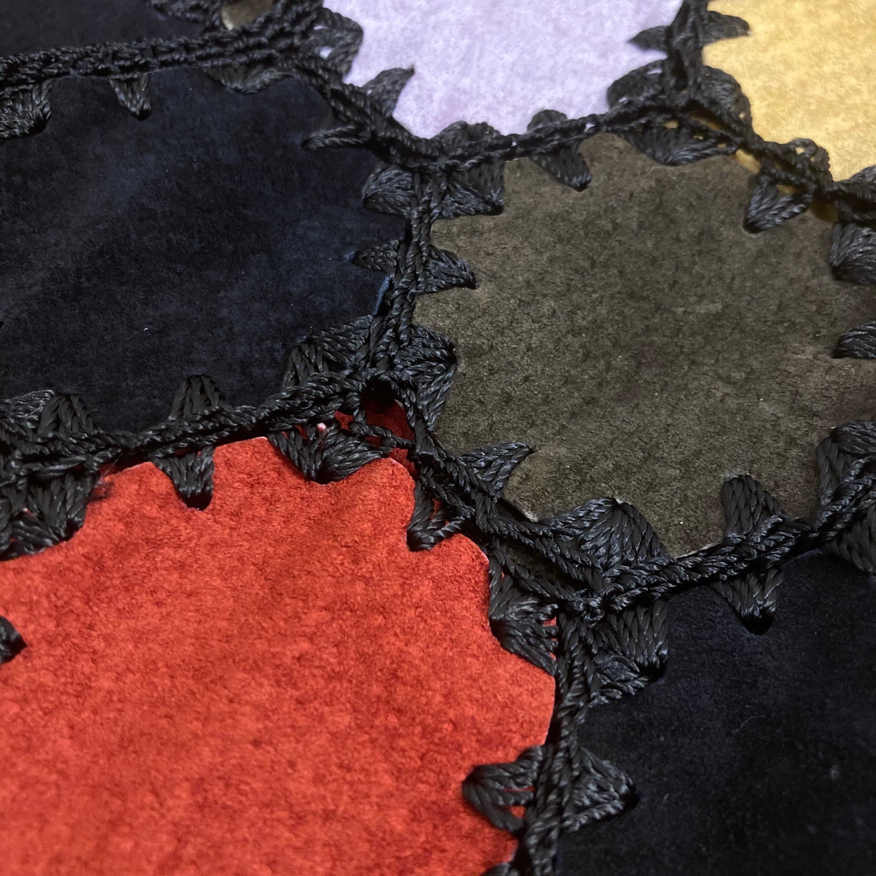5色の六角形のスエードレザーをパッチワークのように合わせた手触り柔らかなテキスタイル